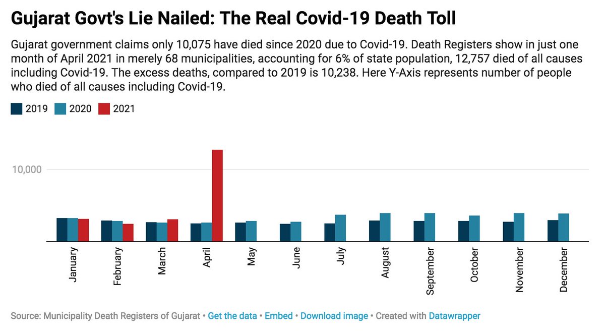 .@tapasya_umm, @nit_set & I spent over 3 months parsing through death registers gathered from 68 of Gujarat's 170 municipalities -- where deaths are first recorded. We collected copies of hand-filled registers between January 2019 and April 2021, running into thousands of pages.