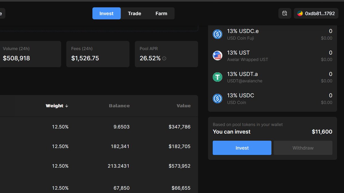 Yatırım yaptığımız poollarla ve yatırım yapttığımız poollara trade işlemleri yapalım.