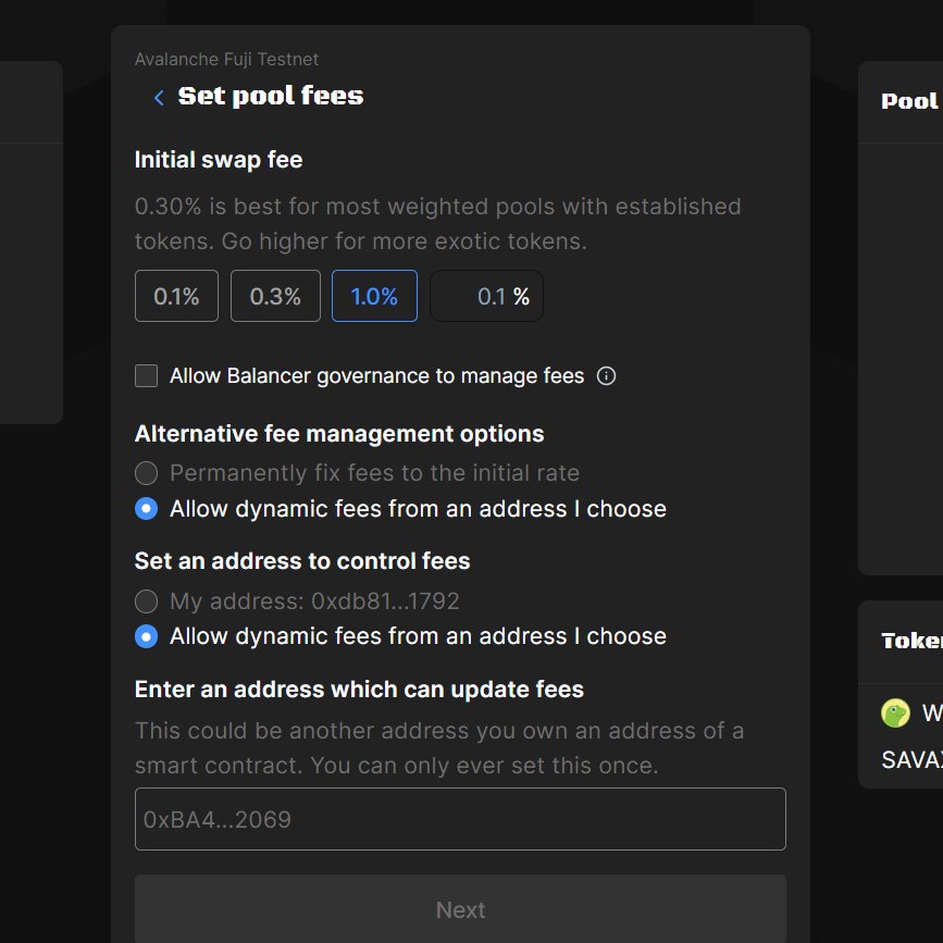 7- Pool oluştuturken ücretleri güncelleyebilecek cüzdanıda oayarlayabilirsiniz.