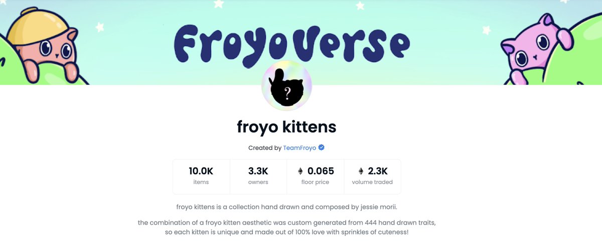 The art is made by @JessieMorii and this was a bet solely on her. So I first started with a buy of 10 $ETH for 34 Froyo Kittens, which was pre-reveal and they moved up a little. After the reveal, something happened which happens to a lot of projects.