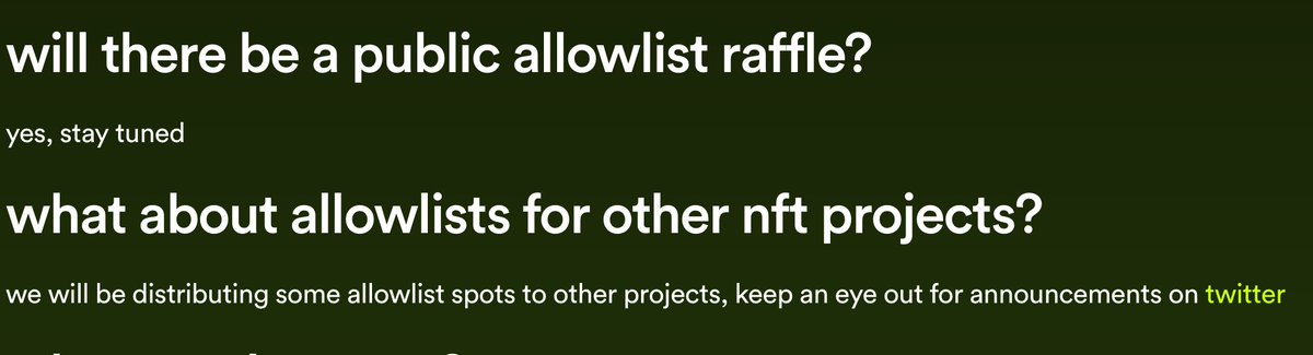 So that's a total of 9.587 (3.052 / 6.535) maximum spots out of the 10.000 if everyone would mint theirs. What will happen to the remaining spots? Well one thing we know is that there will be a public allowlist raffle and some allowlists for other NFT projects.