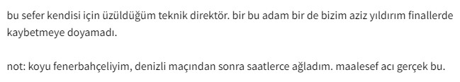 Bu arada, "Fenerbahçe" demişken şu entry'yi buraya bırakmaya korktum ama bırakıyorum yine de... Umarım gelirse Fenerbahçe'de böyle şeyler yaşamaz...