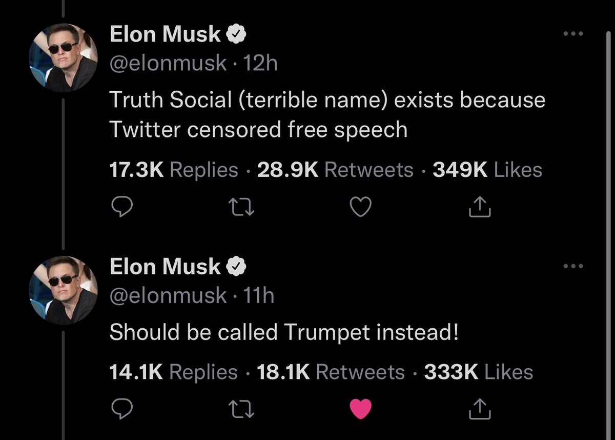 Elon Musk recently said that Truth Social should’ve been called “Trumpet.”