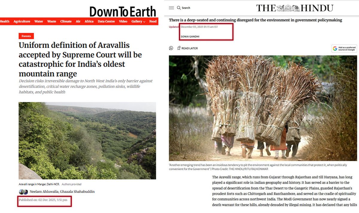 On Dec 2, 2025, Down To Earth (DoE) published a story regarding Aravalli’s definition by the Supreme Court, but from an activist standpoint.