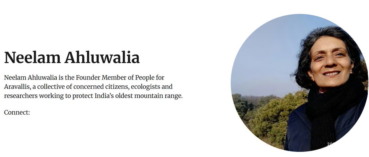 One of the co-authors of the DTE article is Neelam Ahluwalia, an environmental activist who holds PG degree in Environment Assessment & Evaluation from London School of Economics. She is the founder of "People for Aravalis" & "Aravalli Bachao Citizens Movement."