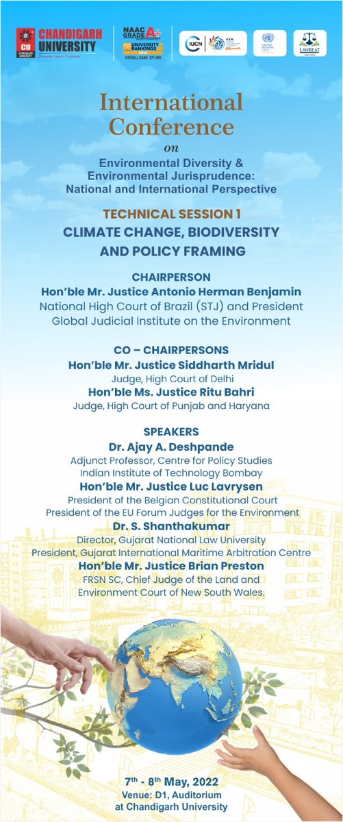 Valedictory session of the International conference on Environmental Diversity & Environmental Jurisprudence: National and International Perspective at Chandigarh University commences. Justice Sanjay Kishan Kaul of #SupremeCourt to deliver presidential address.