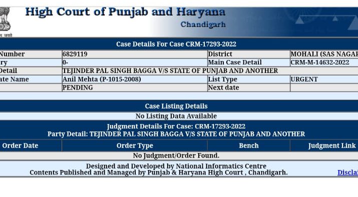 🚨BREAKING: BJP leader @TajinderBagga moved Punjab and Haryana High Court against arrest warrant issued against him by a Mohali Court. Hearing expected in a few minutes at residence of Justice Anoop Chitkara