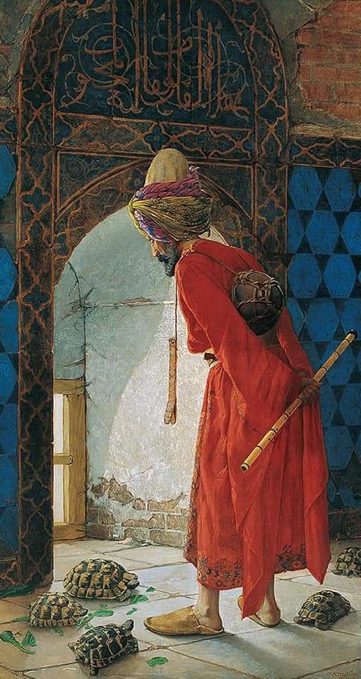 11- Aslında Kaplumbağa Terbiyecisi 'nin birde ikizi var. Osman Hamdi Bey, birçok oryantalist ressam gibi beğendiği tabloyu bir kez daha çizmişti.