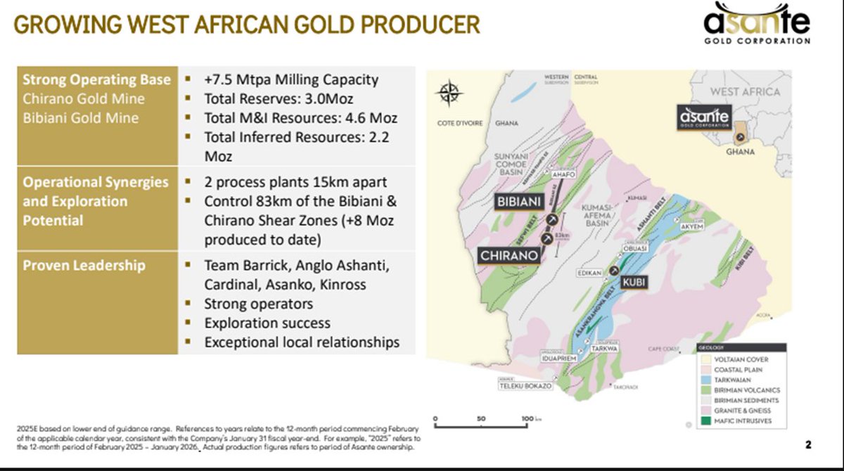 2025 Asante suffered from high costs due to a lot of waste mining and delays. Share price was under pressure from need to bring in capital, delays and additional PP at low price. Ghana will also likely increase royalties by 5%. This caused share price to lag the gold price. 2/x