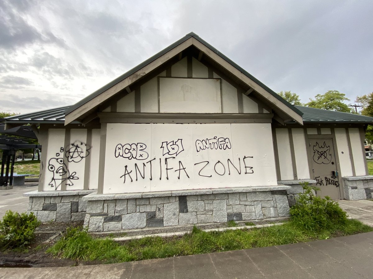 Earlier this week, journalist @choeshow captured the moment #Antifa members at the former CHAZ began vandalizing the @SeattleParks property after it was just cleaned and repainted.