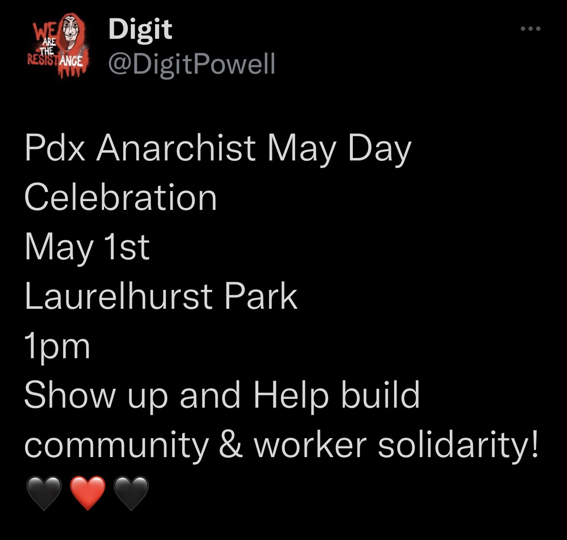 For May Day on May 1, a date honored by communists & socialists, #Antifa in Portland, Ore. are holding an event at 1 p.m. at Laurelhurst Park. They use the event to recruit new members & to further radicalize existing ones. They will distribute terrorist texts as well.
