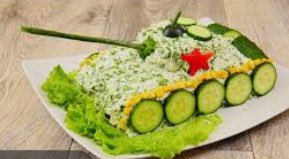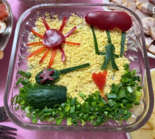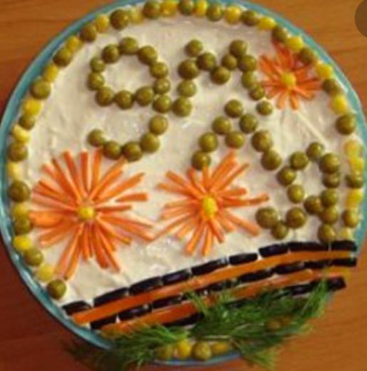 I am obsessed with Victory Day salads (‘for men’). I think it is a combination of sincere effort and inappropriateness as a means of commemoration/celebration