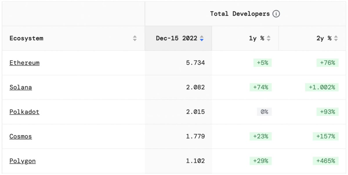 @ElectricCapital'in hazırladığı rapora göre aylık toplam aktif geliştirici sayılarına bakıldığında Ethereum'dan sonra 2082 geliştirici ile ikinci sırada yer alıyor.