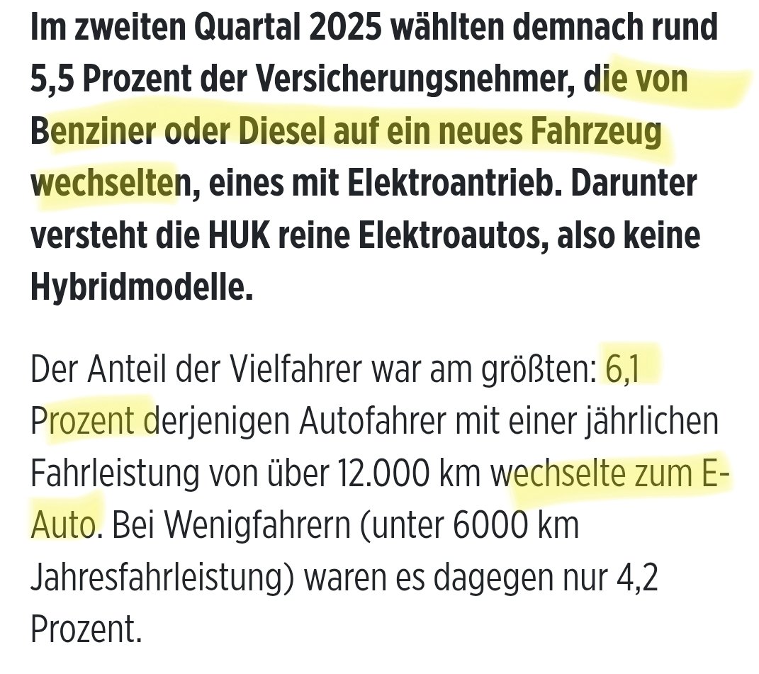 Von diesen "Vielfahrern" (*hust*), die ein neues Auto kauften und bisher Verbrenner fuhren, wechselten gigantische 6,1% auf ein E-Auto.