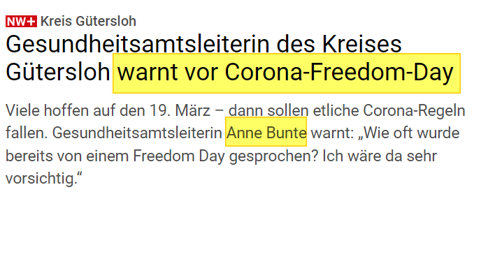 Frau Anne Bunte z.B., Leiterin des Gesundheitsamtes Gütersloh, hat auch schon massenhaft Interviews in der Pandemie gegeben.