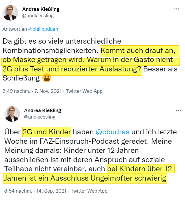 Auch 2G fand sie in Ordnung, außer bei ganz kleinen Kindern. Bei >12jährigen fand sie es immerhin "schwierig".