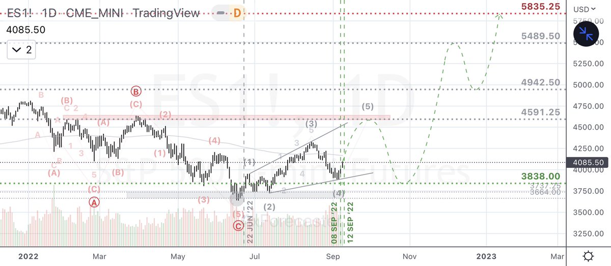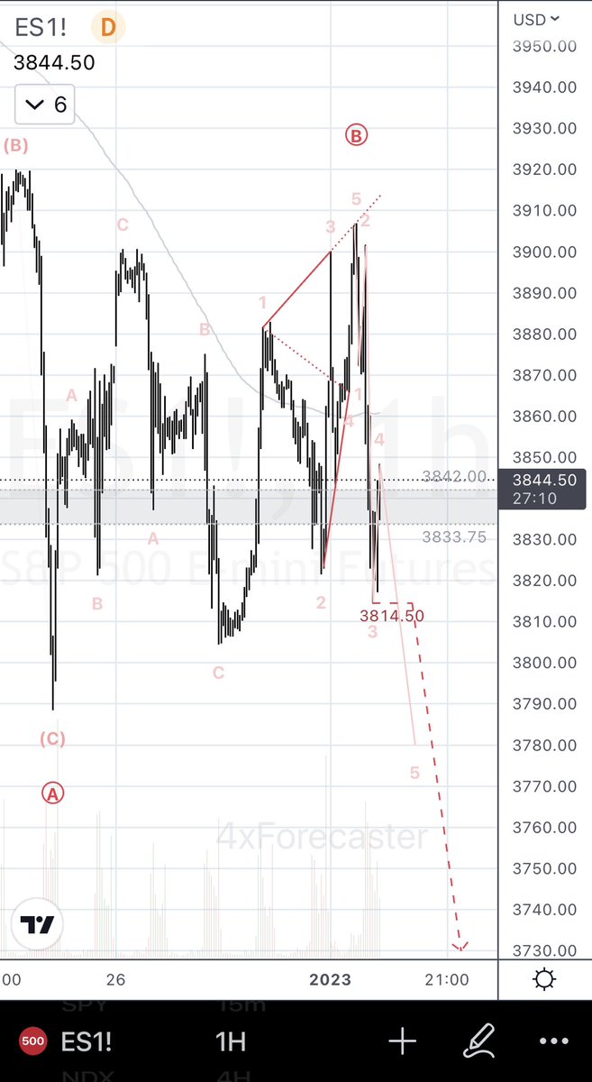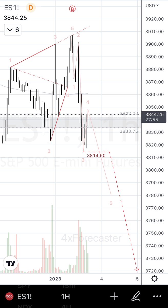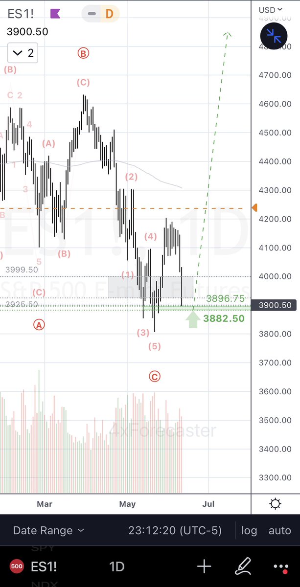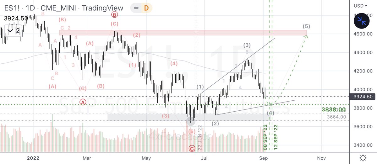 - ST: high-probability reversal at 3896.75/3882.50 target range; 3882.50 favored; invalidated if breaks below wave-C⃝ = 3807.50