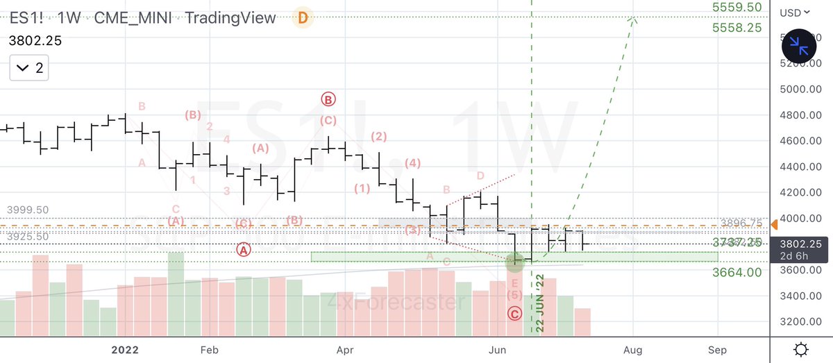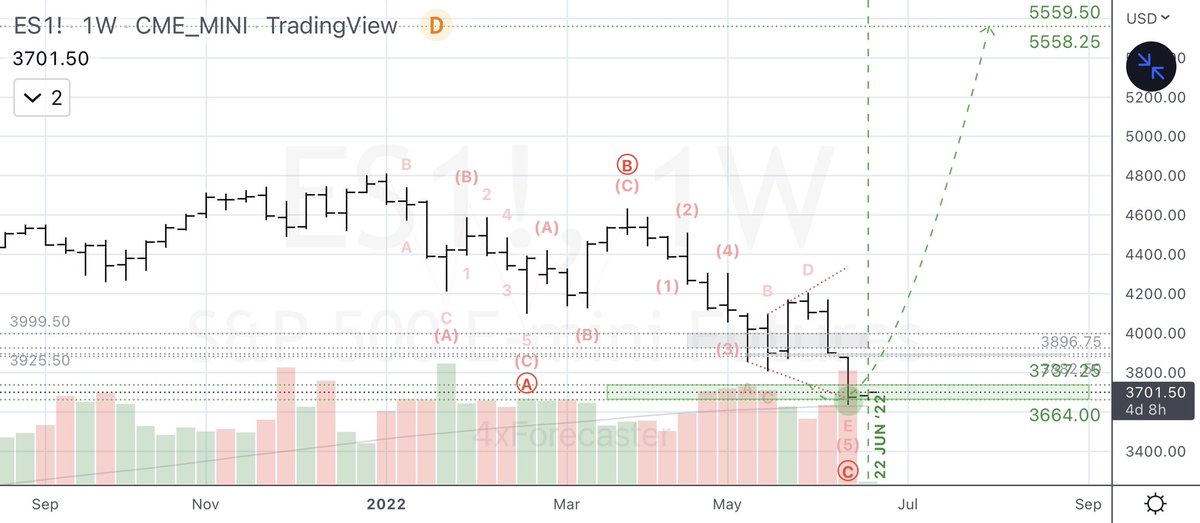 - ST: falling towards 3838.00 target as forecast; time-target saw rallies on weaker volume; now eyeing strength circa 21 SEP ‘22 as possible confluence of price-target and time-target levels.