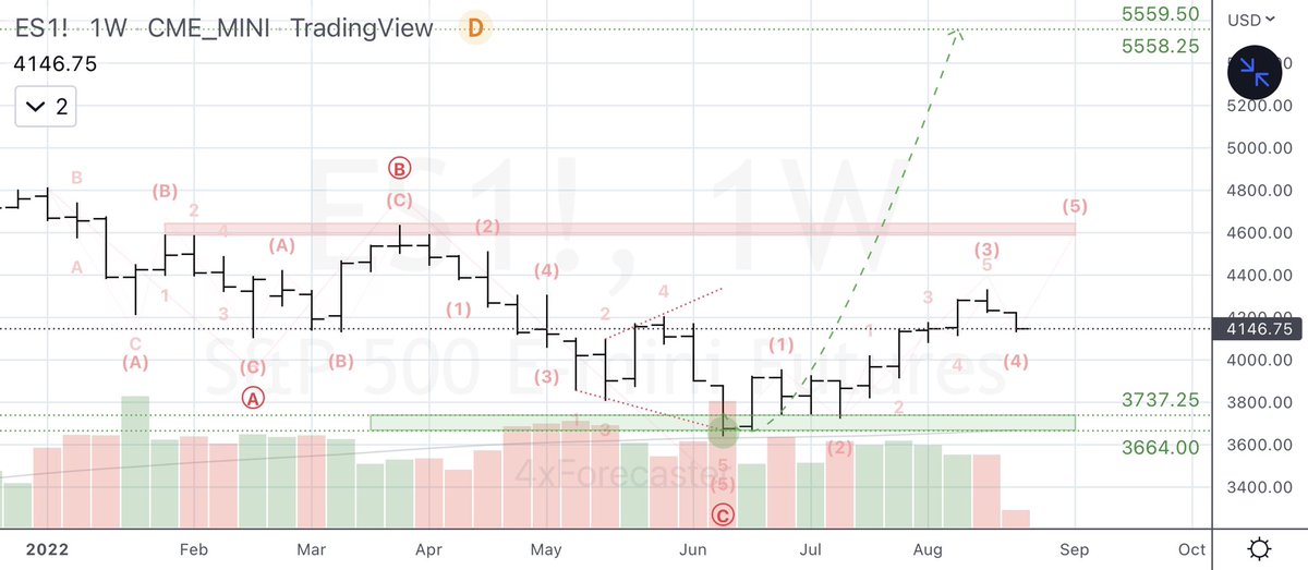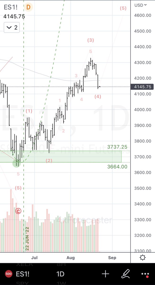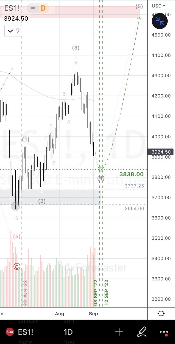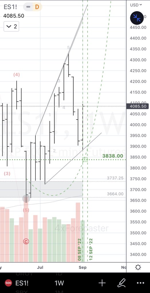 - ST: prior impulse invalidated; for current EW pattern (expanding leading diagonal: 5-3-5-3-5) to survive, wave-(4) must end at/near 3838.00 (circa 08-12 SEP per tentative timing)