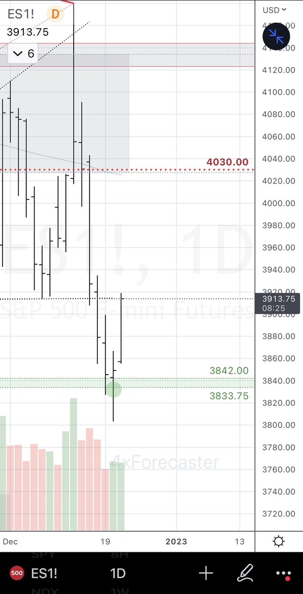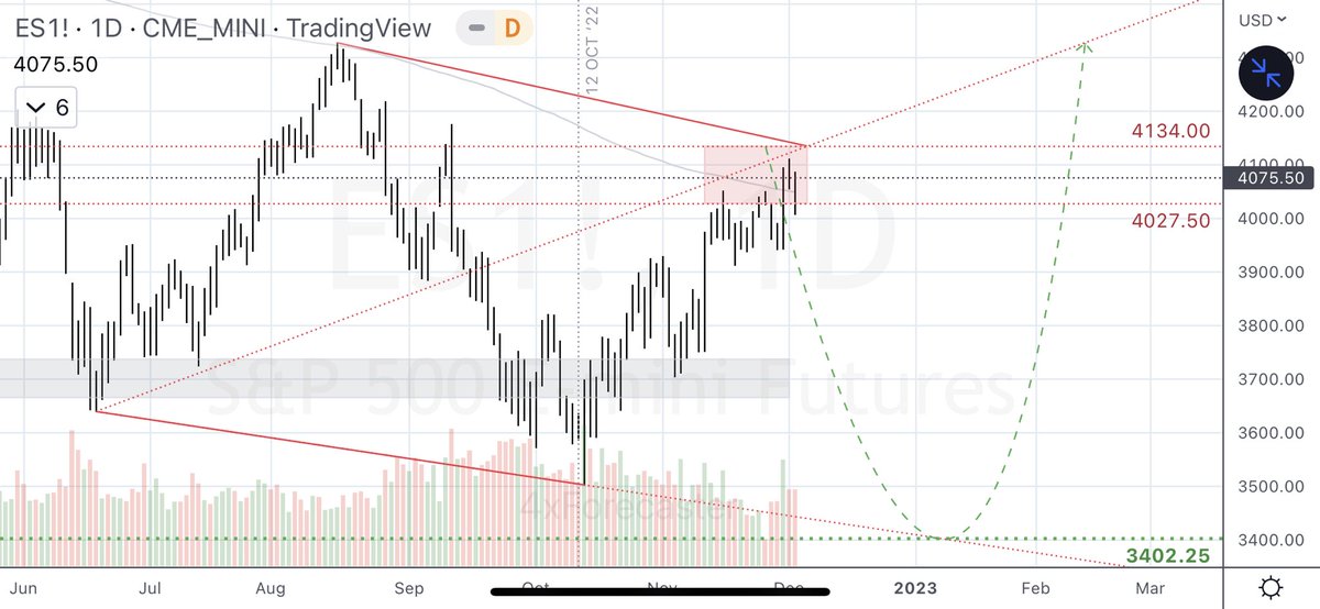 For a rally to occur right away (i.e.: a Santa Claus Rally, plus setting aside historical facts that it could occur until a week from now and it would require beating the 7.3% record gain), a 4134.00 ceiling …