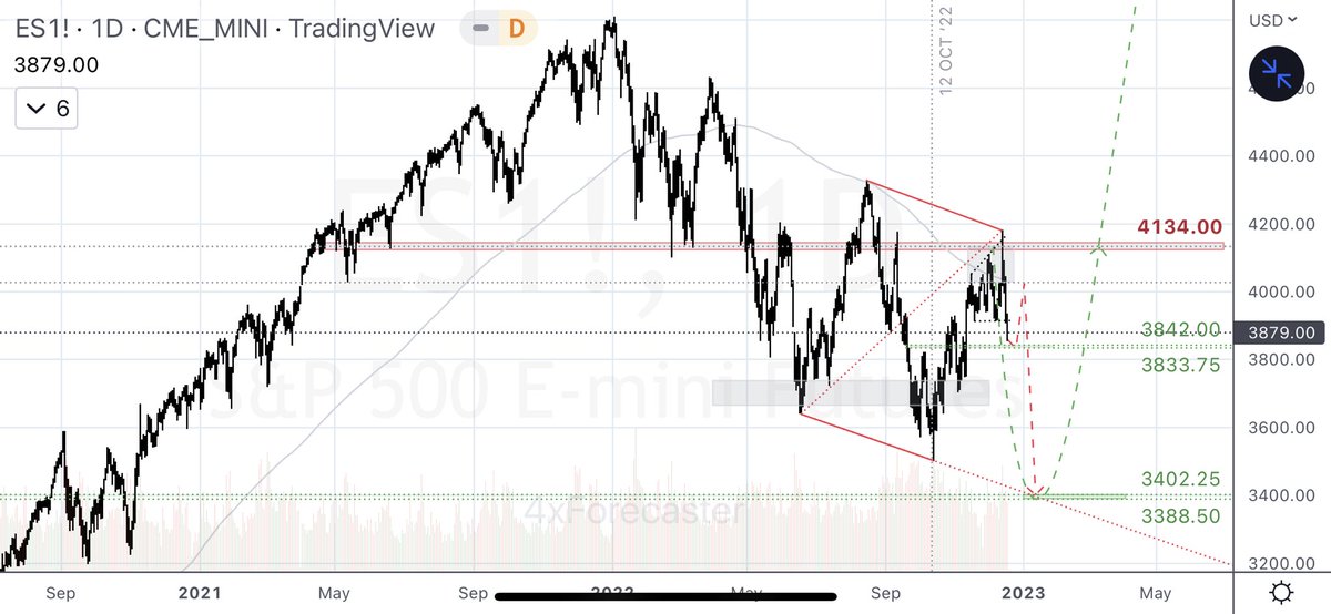 - ST: price remains above 3842.00/3833.75, still eyeing for high-prob RISK of reversal from 4030.00 to 3402.25/3388.50; watching for reversal circa 10 JAN ‘23