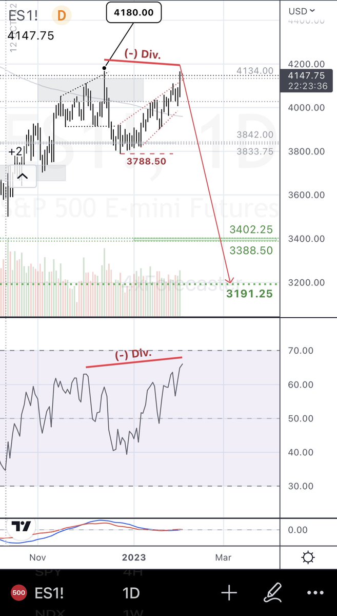 (…) it would take price breaking above and closing above (BACA) its recent high at 4180.00 to erase the (-) Div in the DAILY chart.