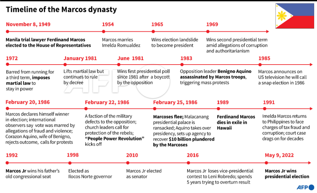 Timeline on the Marcos family political dynasty in the Philippines #AFPgraphics@AFP