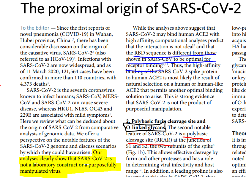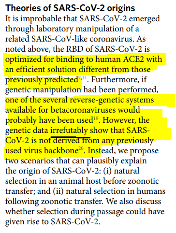 "Our analyses clearly show that SARS-CoV-2 is not a laboratory construct or a purposefully manipulated virus"