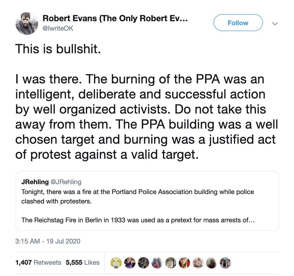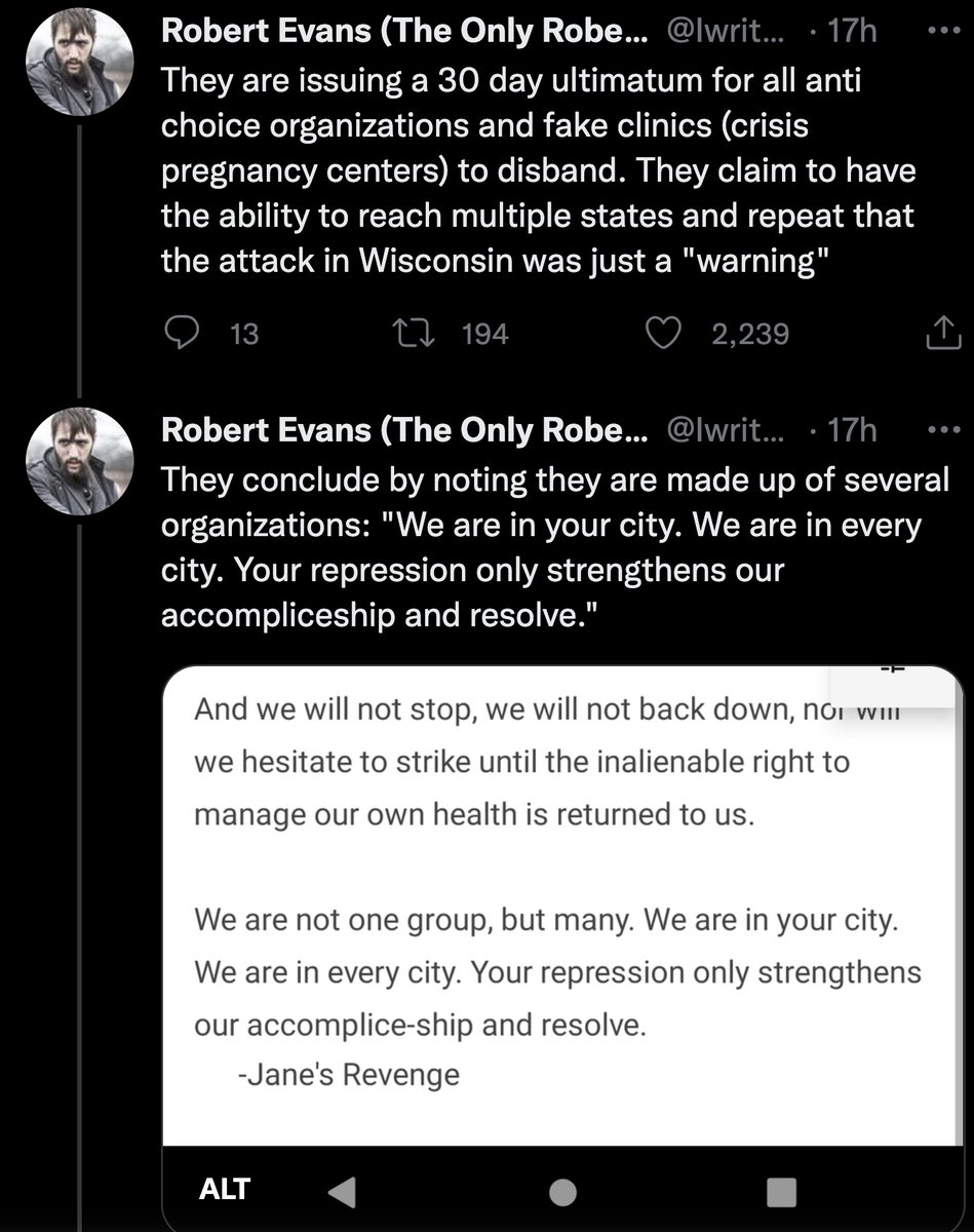 The threats were published by far-left extremist & #Antifa supporter Robert Evans, who received it from a personal contact he trusts but won't name. Evans writes for @bellingcat, donates to far-left causes & has praised a domestic terrorist attack in Portland.