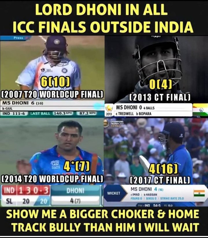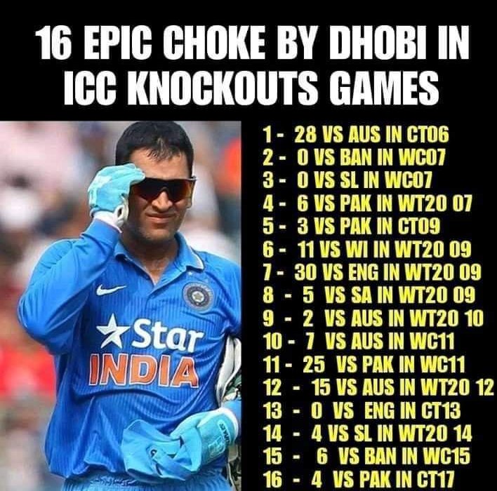 5.Choked in ICC finals outside India. Thala Dhobi Supermacy 🔥🔥