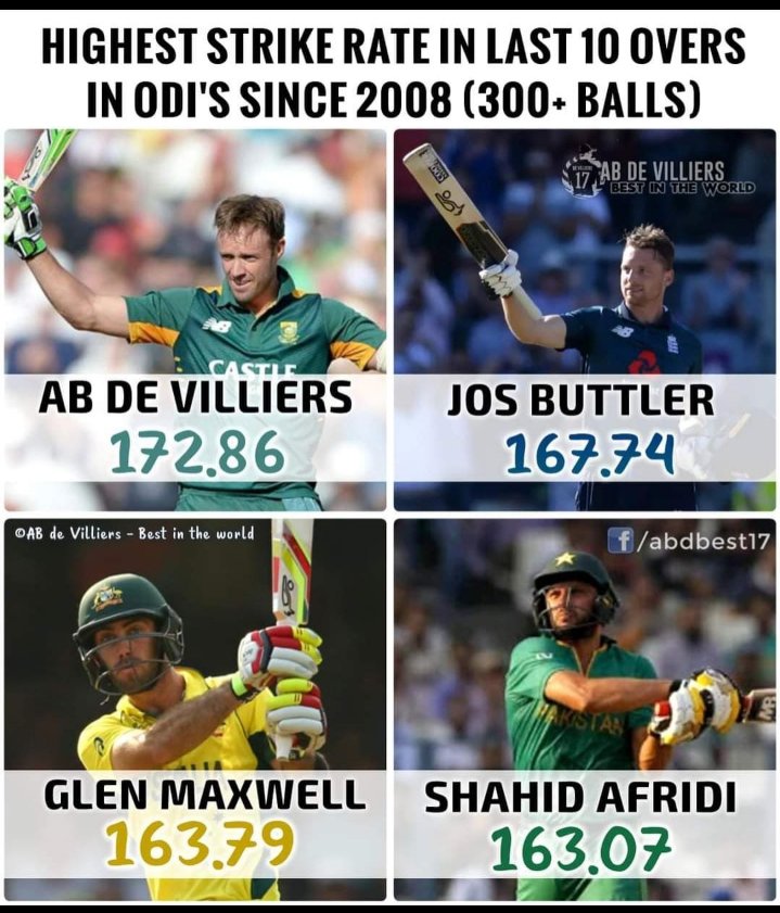 7. Called as the best finisher ever, and a finisher should have the better strike rate..but his name is not there in the highest strike rate in last 10 overs in ODI's since 2008.
