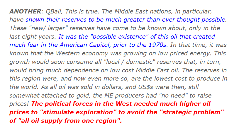 - Keeping oil in ground elsewhere keeps supply down / increase profits for $ system