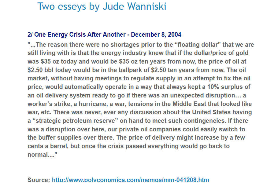The oil market before and after Nixon has been never the same. No need to have strategic petroleum reserve. The reason there were no shortages prior to the “floating dollar”... polyconomics.com/memos/mm-04120…