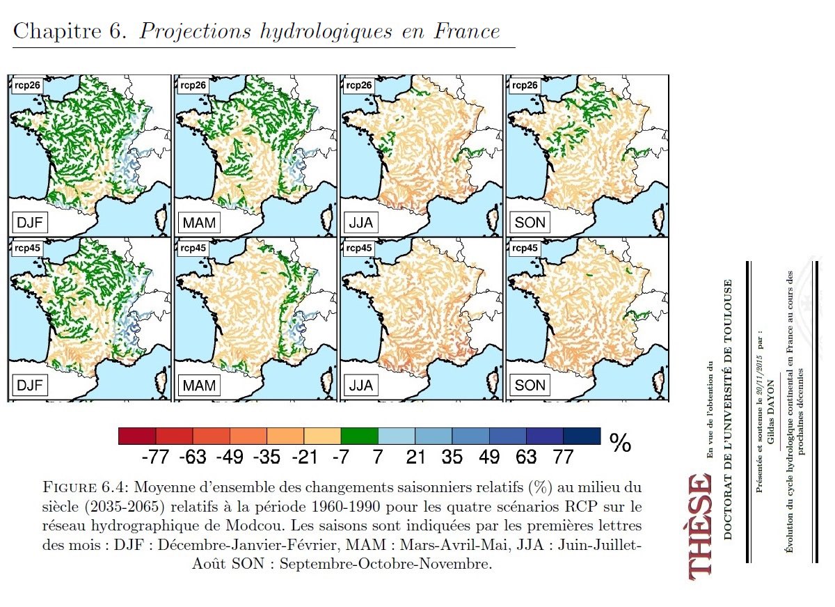 et même à court terme (dès 2035), les changements des débits des rivières et fleuves sont considérables, menaçant la production électronucléaire FR.