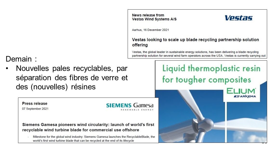 7️⃣ Jusqu'à récemment, la composition et la structure des pales ne permettaient pas le recyclage de leurs composants (fibres de verre, résines). Leur traitement en fin de vie consistait soit en leur brulage dans les cimenteries (“combustibles solides de récupération“), soit …