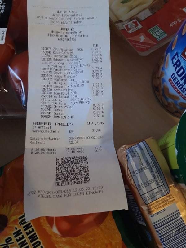 One Ukrainian woman in Austria has already stretched her €50 Hofer supermarket card into at least 5 trips to the store. She keeps sending me photo updates!