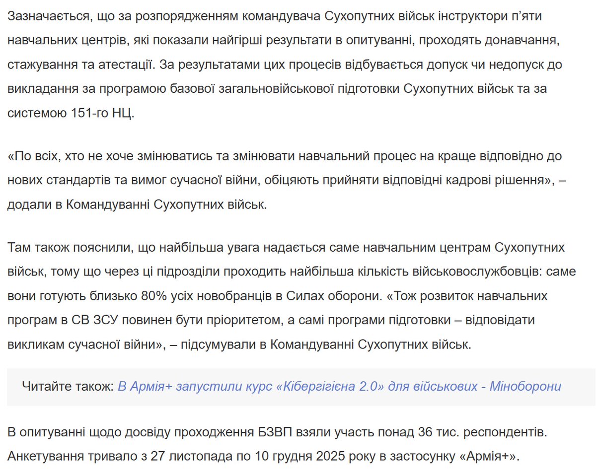 в листопаді-грудні 2025 року було проведено опитування військовослужбовців в застосунку “Армія+” з приводу навчальних центрів і якості БЗВП.