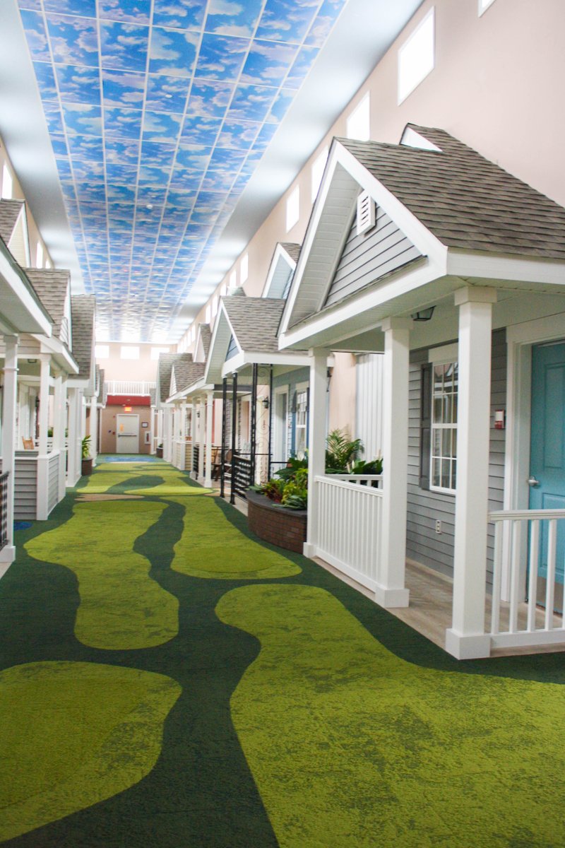 Pero por dentro, los pasillos simulan calles y cada habitación cuenta con un porchecito, como una casita.