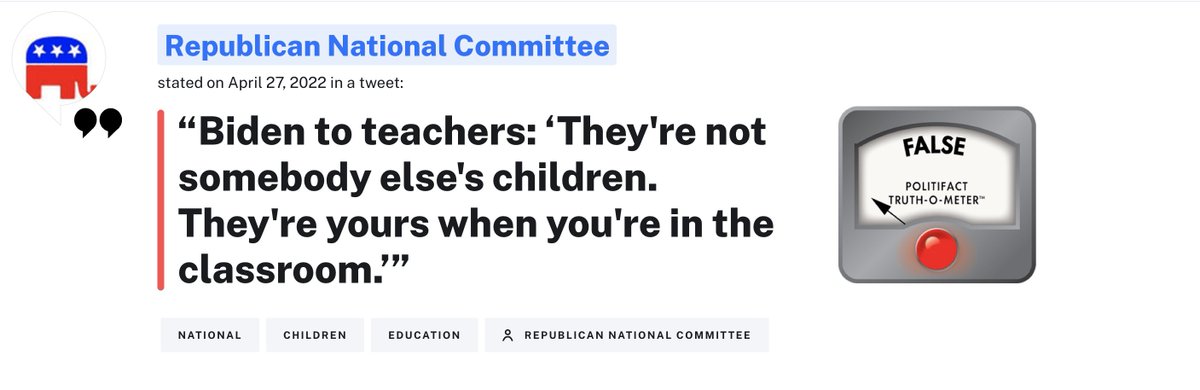 Browsing through PolitiFact is amazing. A direct quote from Biden is false because it leaves out one word that does not change the meaning of the statement at all. A thread on the best ones. politifact.com/factchecks/202…