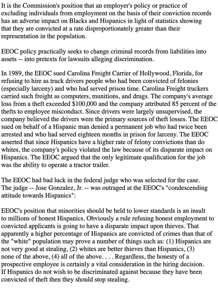Also, no criminal background check for unsupervised employees who have a lot of opportunity to steal because again, racism. This stuff often gets slapped down in court, but most employers just settle or close down because it's too expensive and difficult to fight.