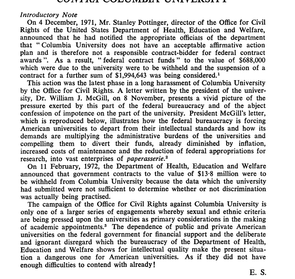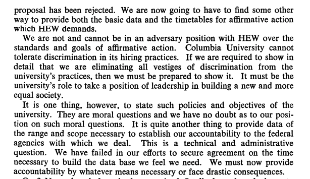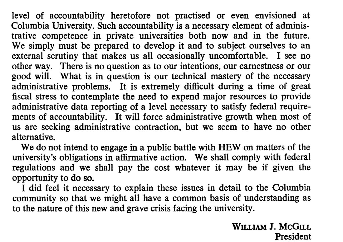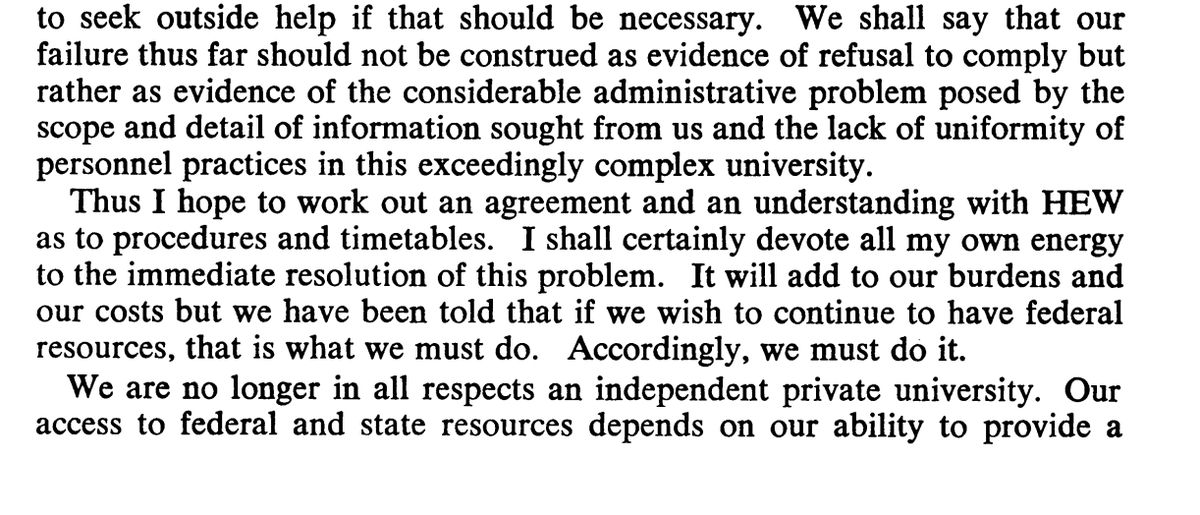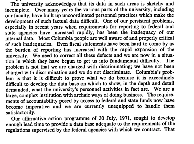 Wokeness didn't start in the universities. Columbia president in 1972, responding to new affirmative action requirements from feds: "We are no longer in all respects an independent private university."