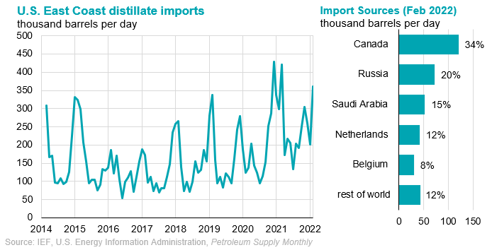 Even in the latest data (February 2022) Russia was 20% of distillate imports, with Netherlands and Belgium 12% and 8%, respectively.