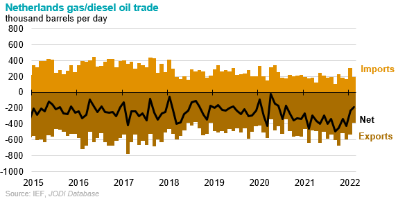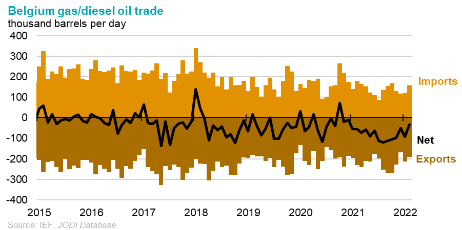In Belgium, @JODI_Data shows gasoil/diesel exports were down slightly, to 189kb/d in Feb 2022, compared with 230kb/d at the same time last year.