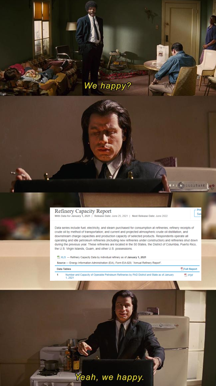 Another note: One of my favorite reports from @EIAgov is due out next month - the Annual Refinery Capacity Report. This report will provide LOTS of details about refinery downstream unit capacities and will help with analysis considering all that's changed recently.
