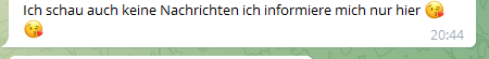 Wenn ich mir die Entwicklung von manchen Leuten anschaue (ich bin seit 01-Jan-2022 auf Telegram) dann bereitet mir heute (14-Mai-2022) so manche Persönlichkeitsentwicklung Sorge. 6/x