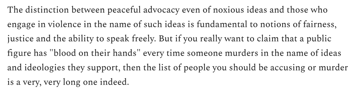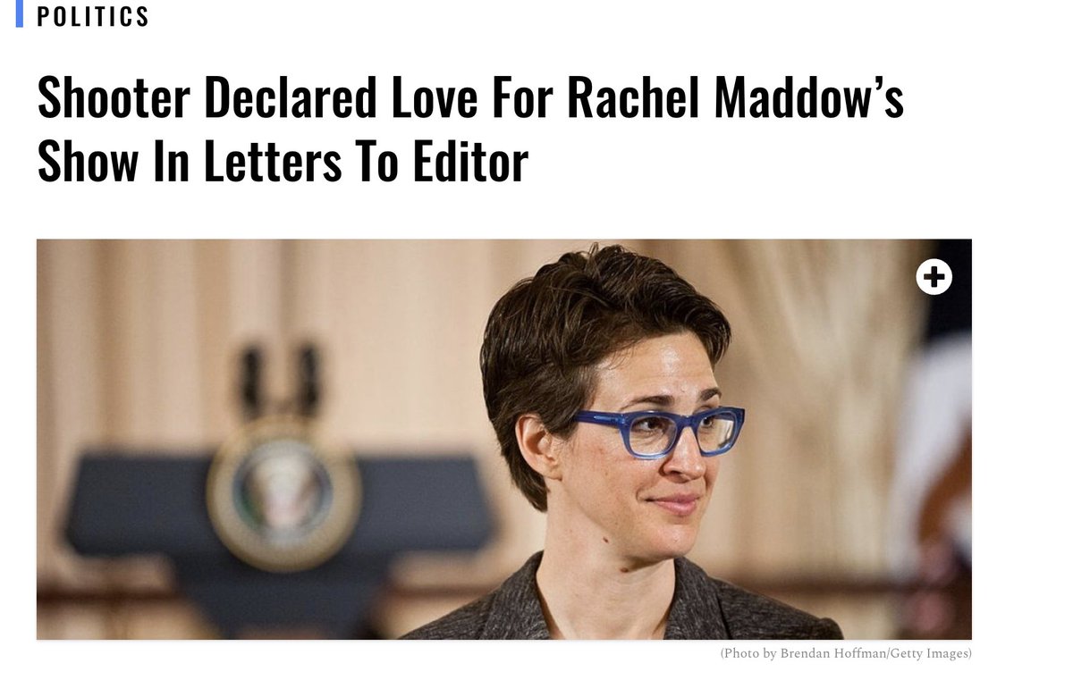When a Maddow-worshipping, Bernie-supporting fanatic shot GOP Congressmen in 2017, nobody held them responsible -- even though they deeply influenced the shooter and held all the same views -- because doing so would be reckless and irrational.