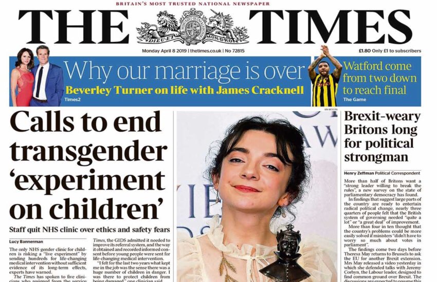 Here’s just 4 headlines from UK media. First one is the classic ‘think of the children*’, 2nd implies kids are being experimented on (they’re not), 3rd is pure Fascism & 4th shows how a UK govt ‘equality’ body is working to make toilets inaccessible to trans people.
