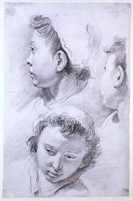 Gainsborough was born in Suffolk & it’s gentle landscape informs many of his pictures. He left to study in London in 1740, where he was influenced by the French Rococo & Hogarth. Here’s a Self-portrait of that time, a Couple (c1740) & an early set of studies of a head (c1737)