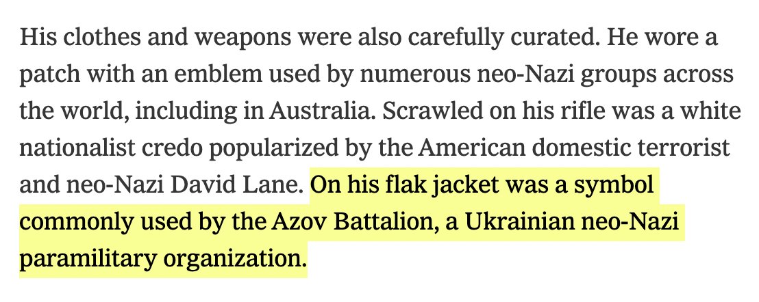 He also explicitly labels himself a fascist, a white supremacist, a racist, and writes: "I support neo-nazism." So there's zero ambiguity about his stated beliefs. Even says he's copying the 2019 New Zealand shooter -- manifesto seems to be written in almost the exact same style