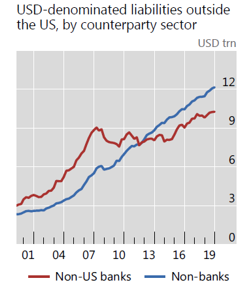10/13 The strong US $ is important here for a number of reasons. There are large amounts of US $ debt around the world (Euro $ market) which need to be serviced. The size of the Euro $ market is difficult to estimate but 2019 data from the BIS points to US $ 20 trillion plus.
